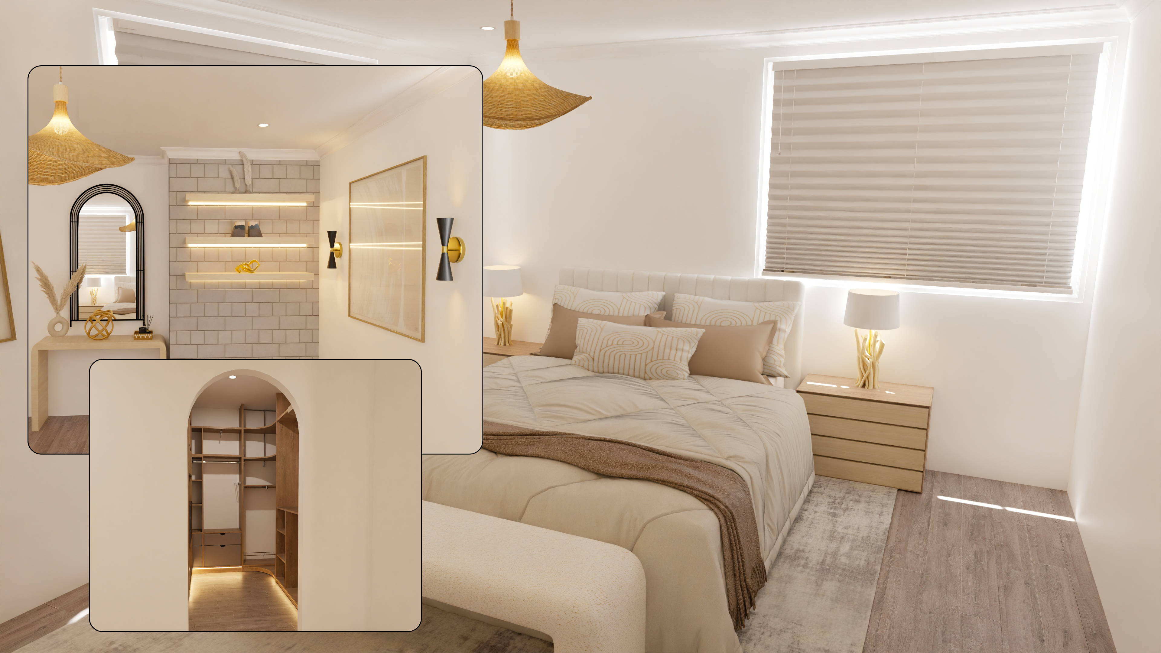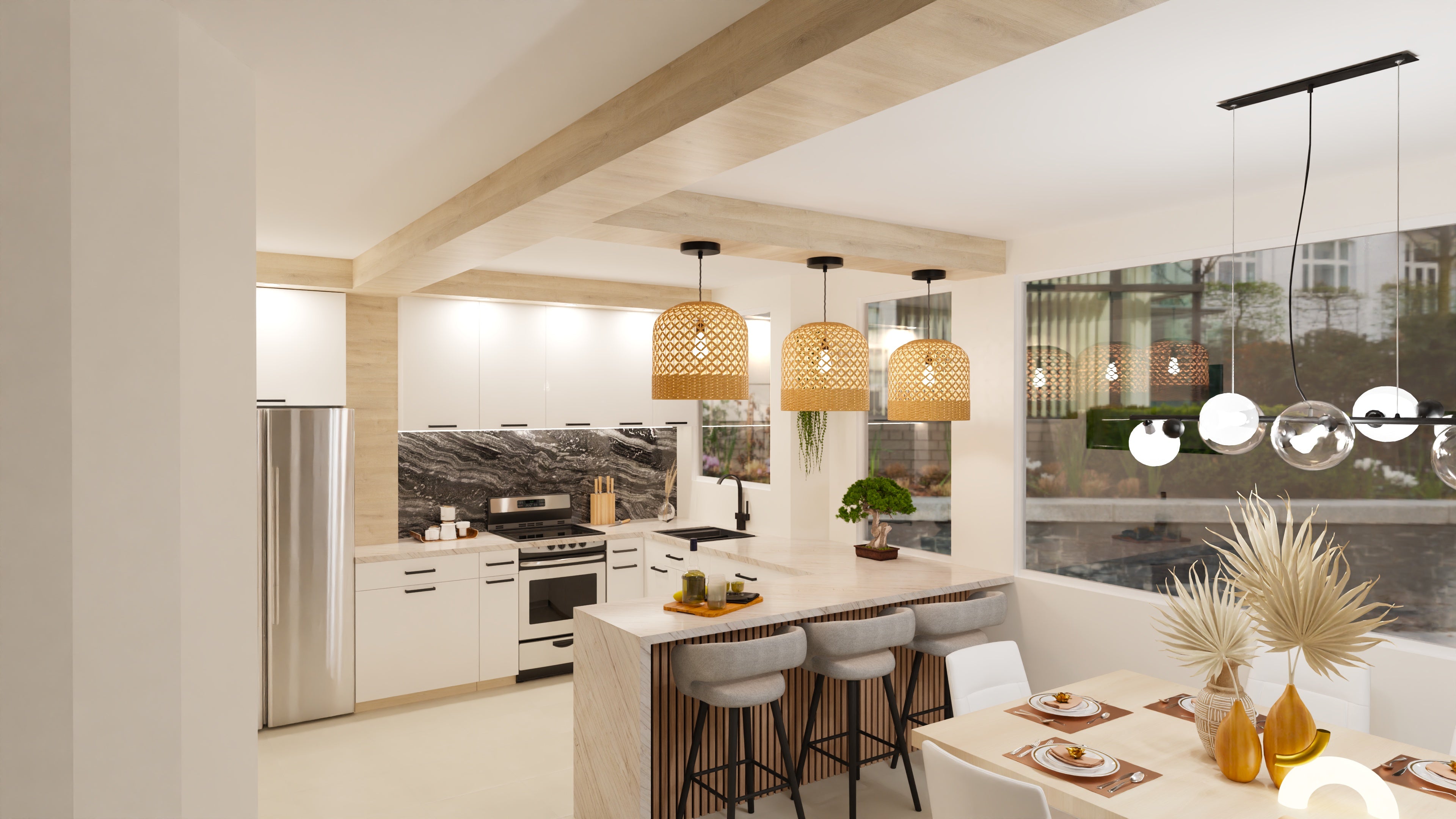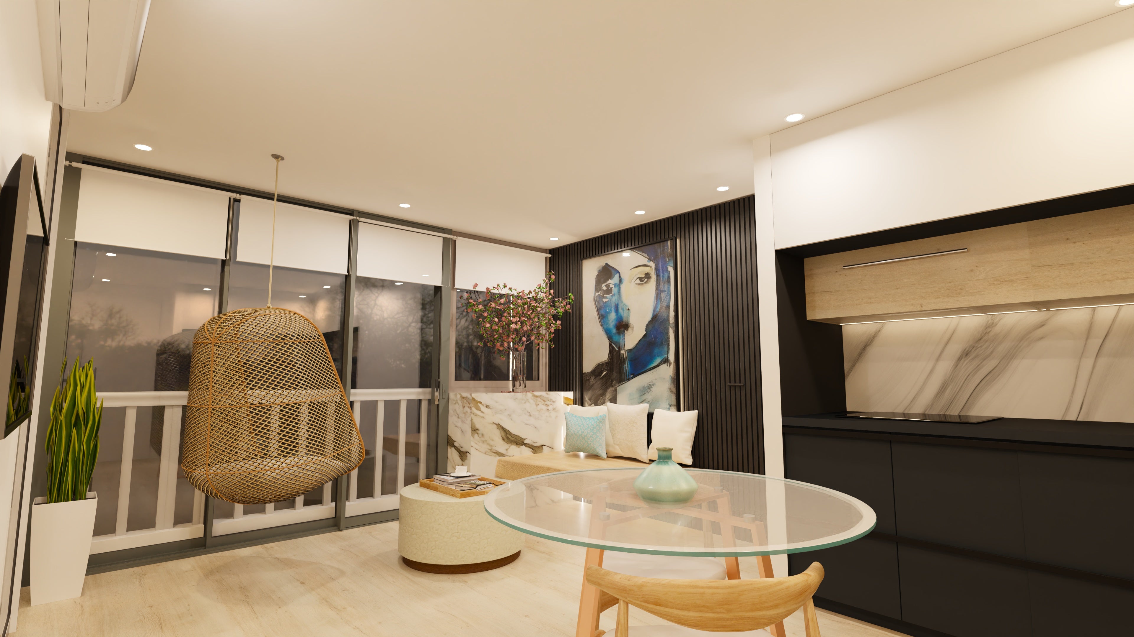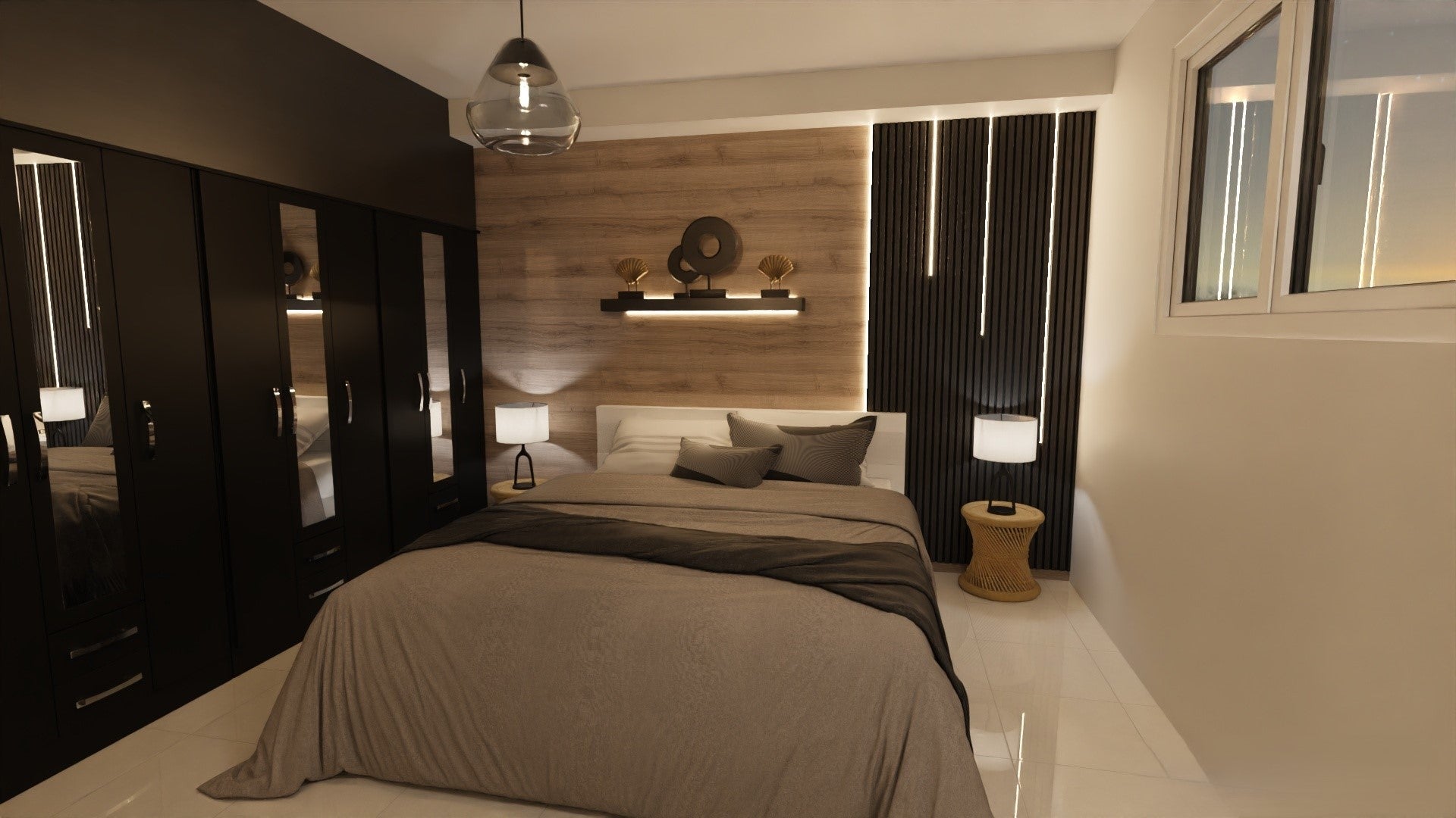We combined natural textures, subtle contrast, and balanced lighting to soften the contemporary structure.