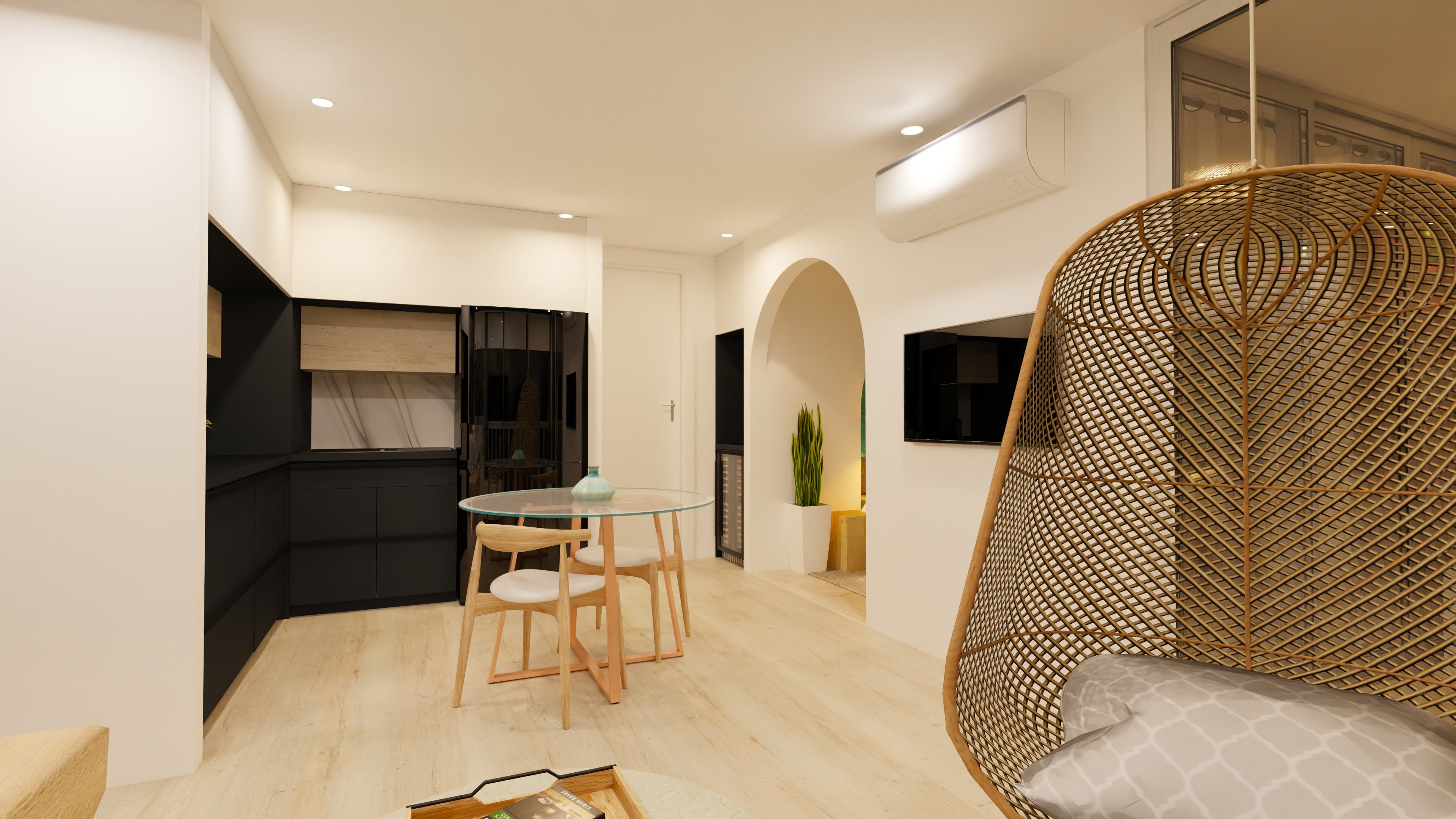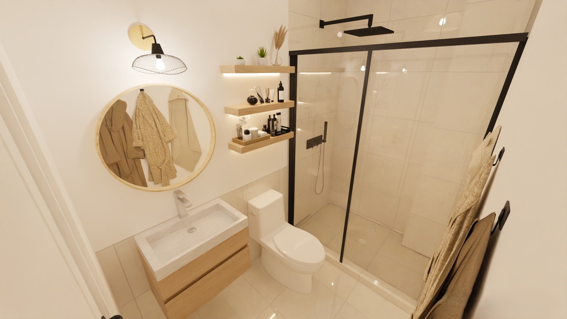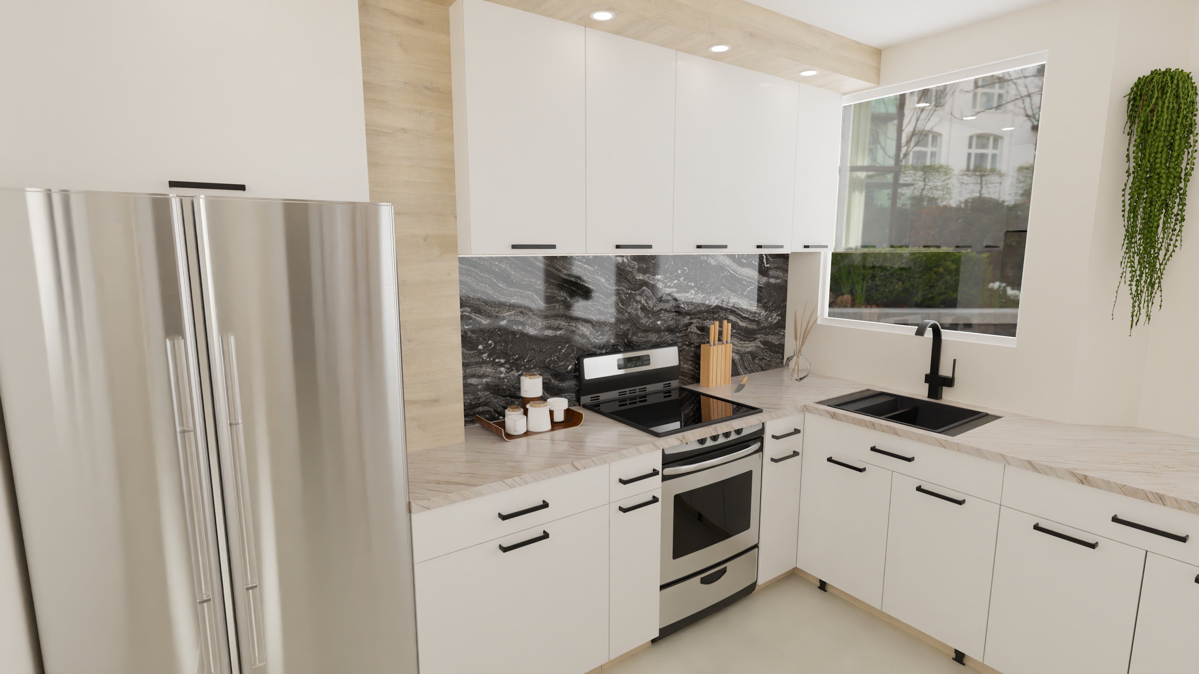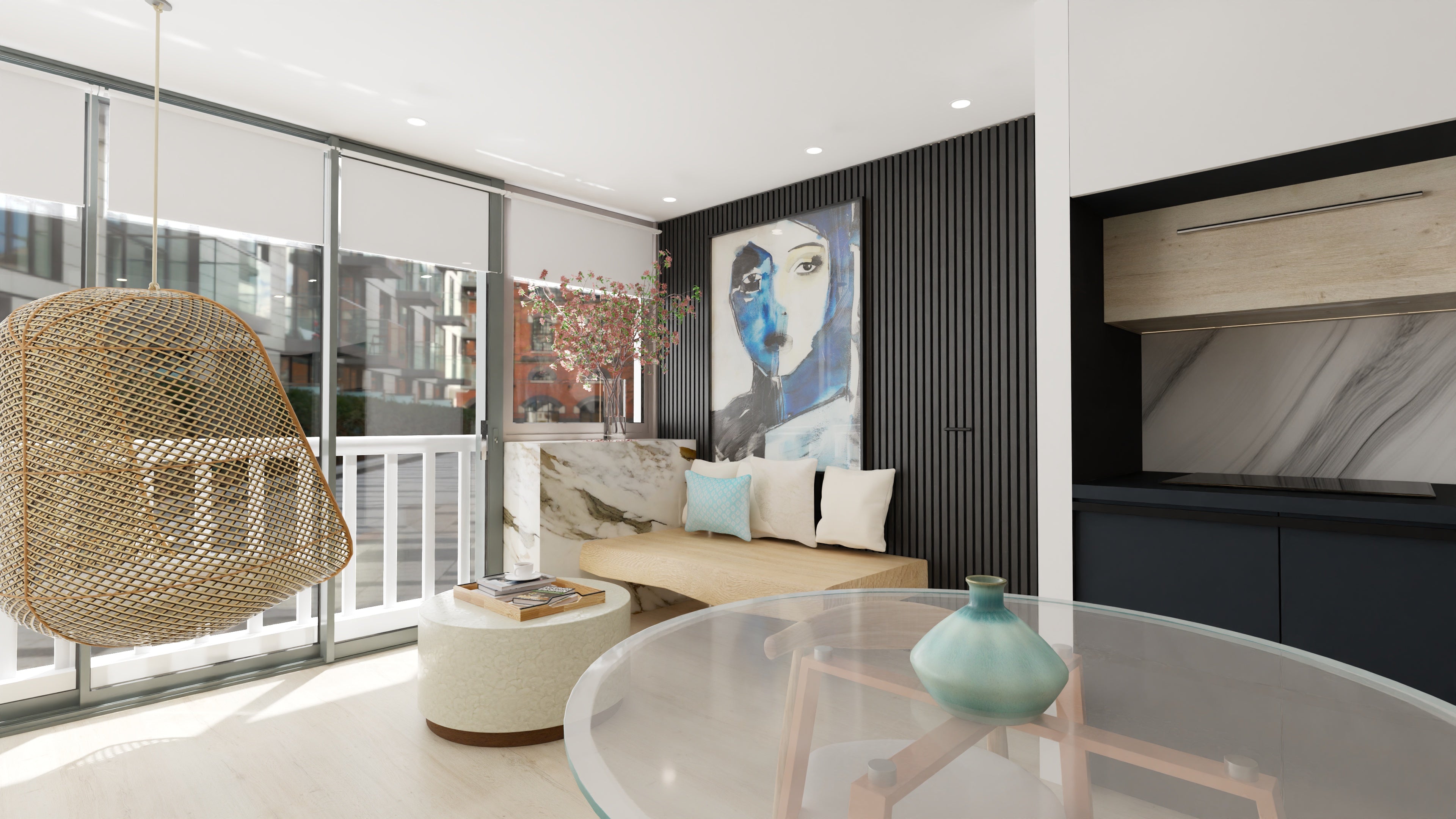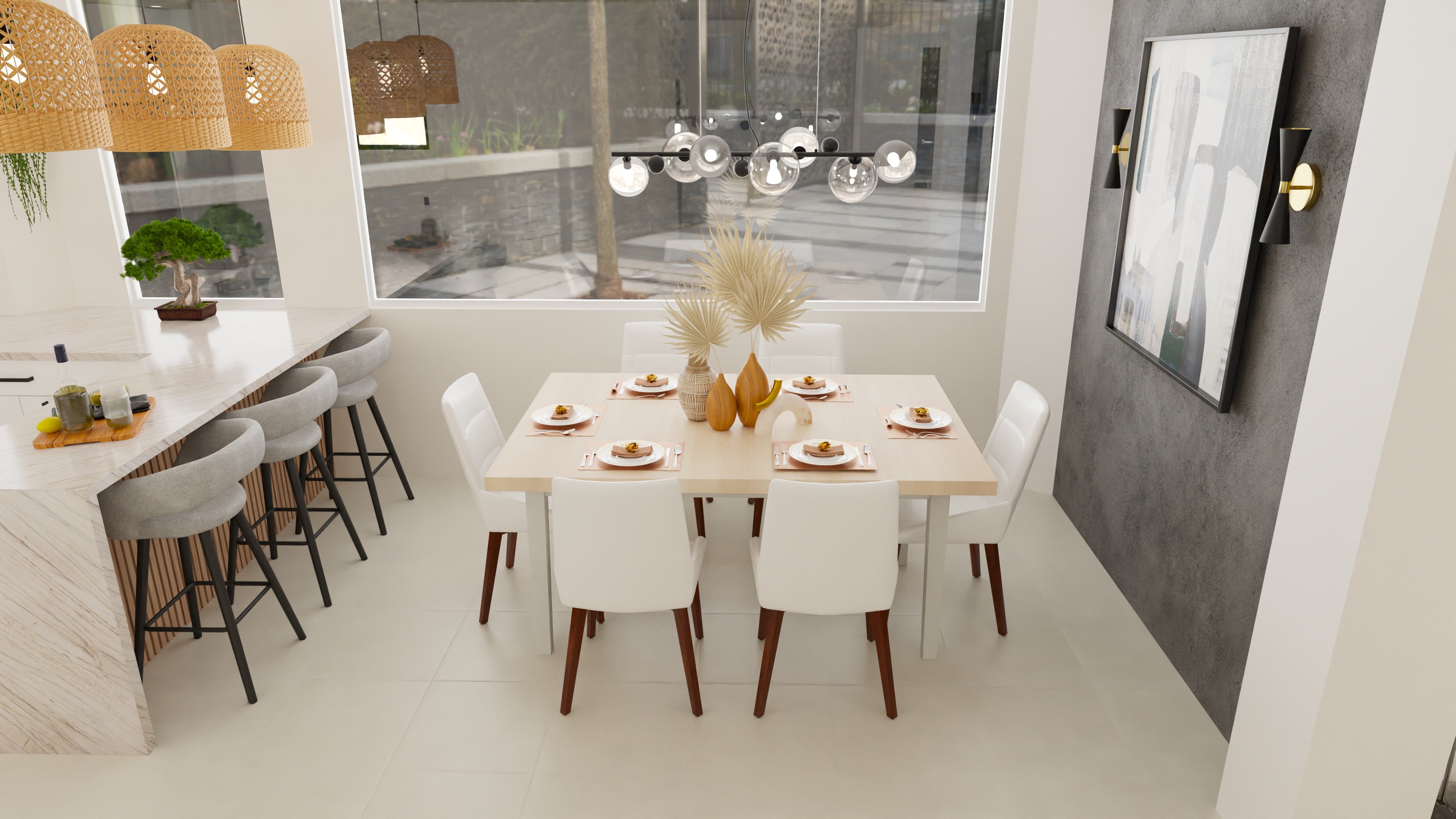 We combined natural textures, subtle contrast, and balanced lighting to soften the contemporary structure.