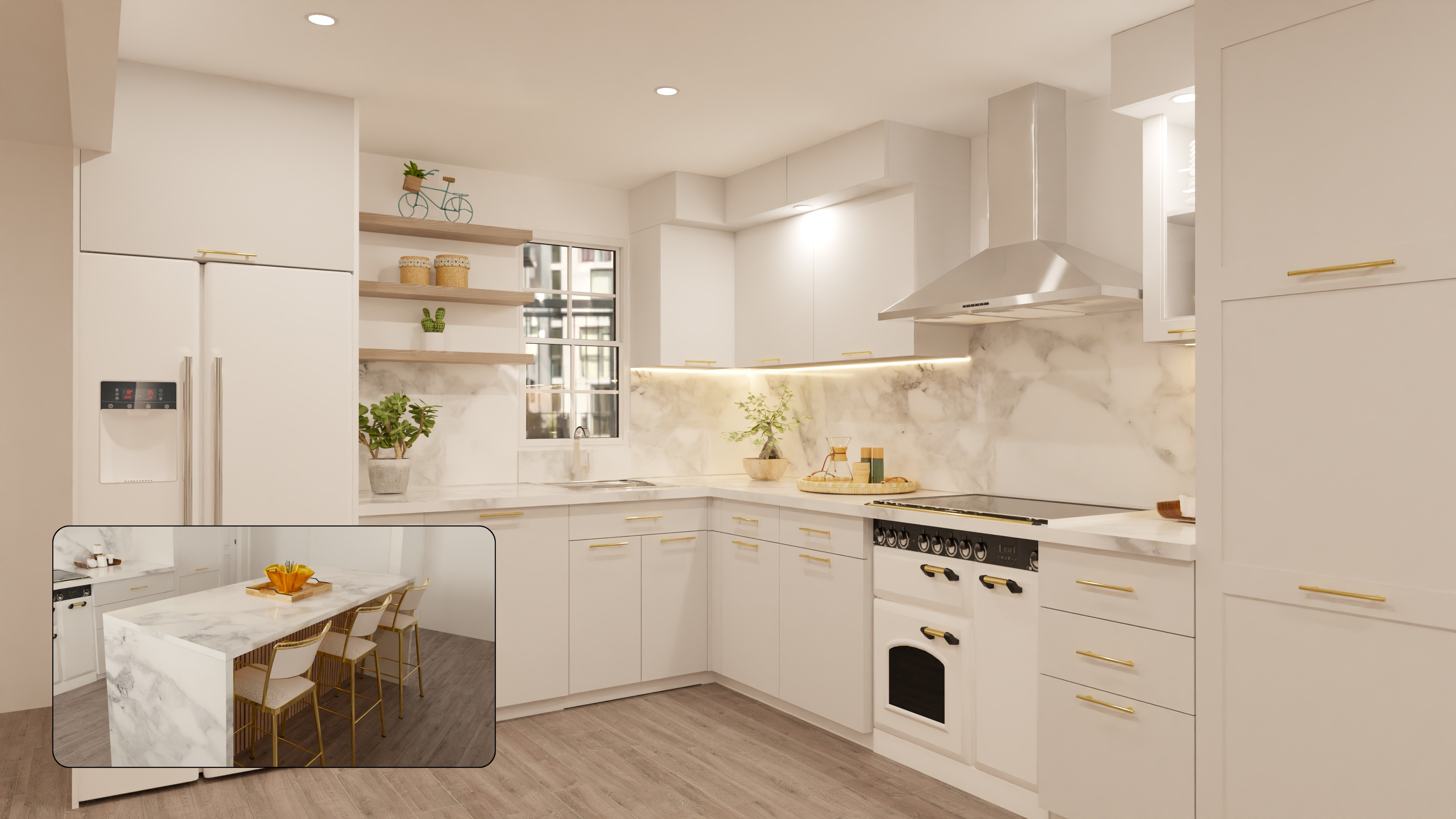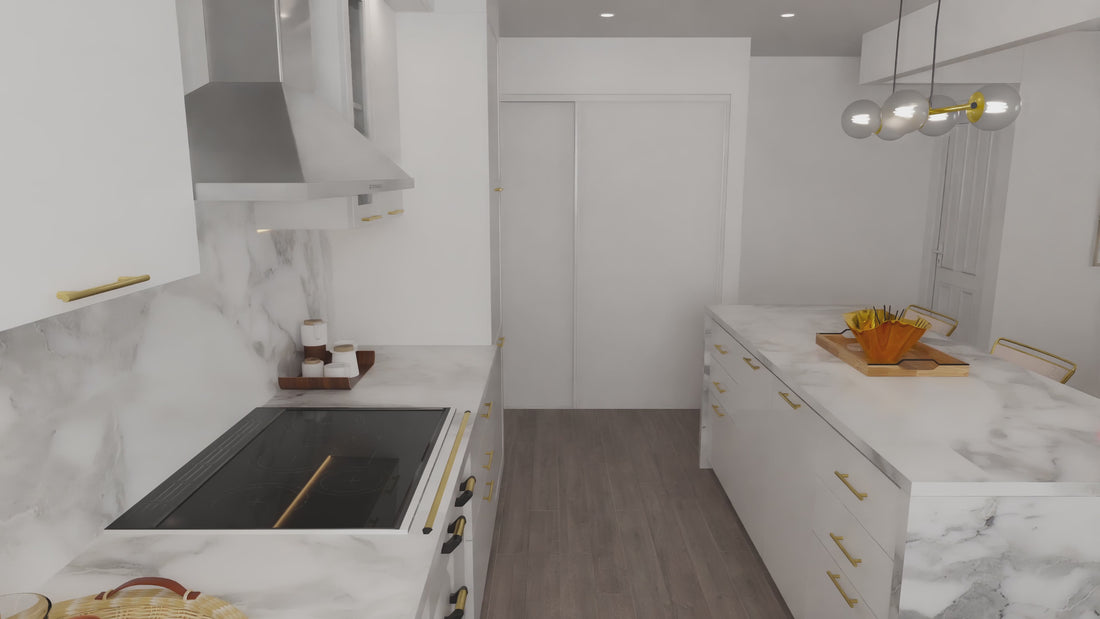 Design a modern urban kitchen that feels inviting and warm while maintaining clean architectural lines.